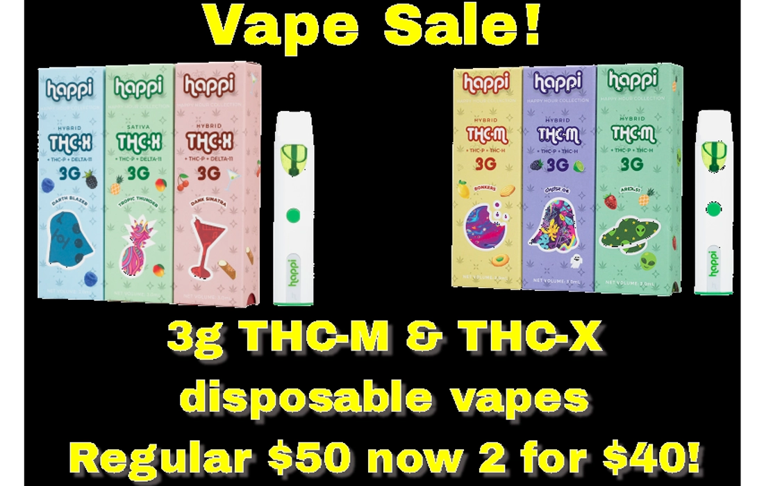 Happi Happy Hour Collection 3G THC-X & THC-M disposables 2 for $40 (Normal $50)